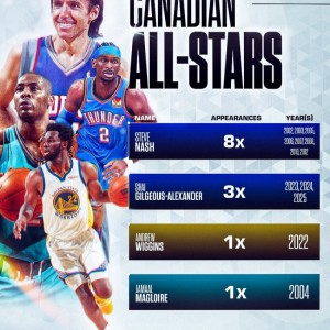 1月15日讯 NBA Canada晒出了历史上入选过全明星的加拿大球员。历史上,他们一共只有4人入选过全明星,分别是:纳...